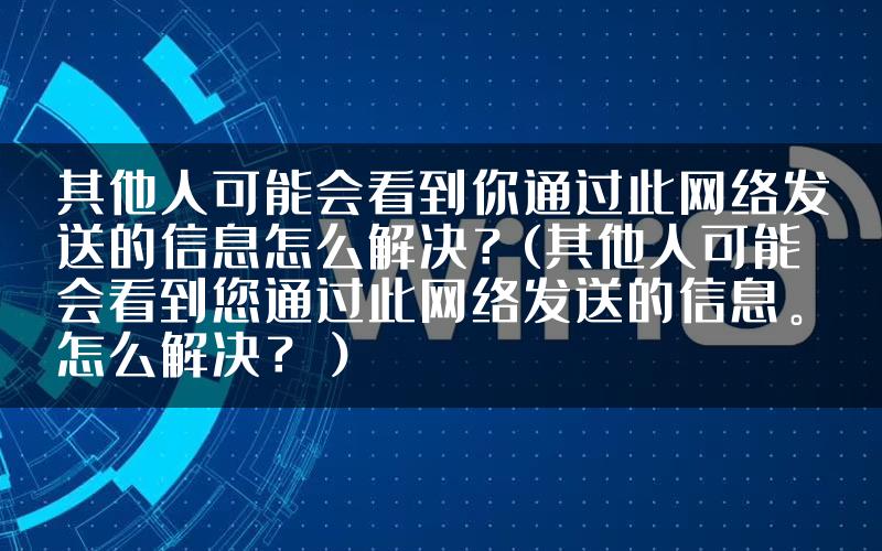 请问各位:无线网络显示“别人可能会看到你通过这个网络发送的信息”的原因是什么?
