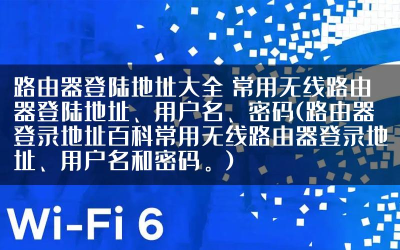 【导读】路由器登陆地址大全 常用无线路由器登陆地址、用户名、密码,下面就是路由器整理的网络知识百科,来看看吧!