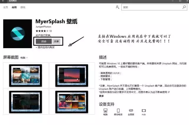 zui后为了大家能够下载到绿色健康无污染不含添加剂的MyerSplash,所以强烈建议大家直接去Windows应用商店中下载。