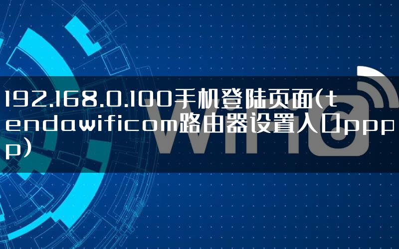 - 192.168.0.100手机登陆页面,tendawificom路由器设置入口pppp?